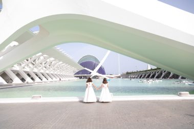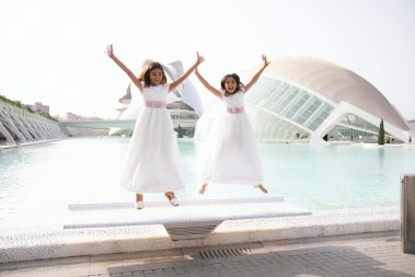 Para esta sesión en concreto con estas dos preciosas hermanas, realizamos la sesión en la Ciudad de las artes y las ciencias y en la Playa del Saler.