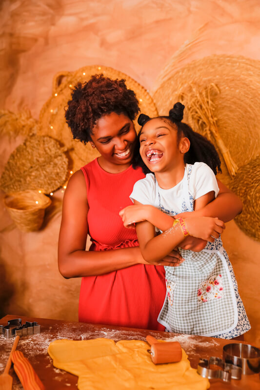 Lo mejor es que tu peque llegue con ganas de jugar. En lugar de decirle que «tiene que portarse bien», cuéntale que vais a una cocina navideña mágica, con harina, moldes, delantales, canciones y juegos. Una chica hará fotos de todo lo que ocurra mientras se lo pasa en grande. Y además, ¡vosotros también jugáis! Así se sentirá cómodo y emocionado.